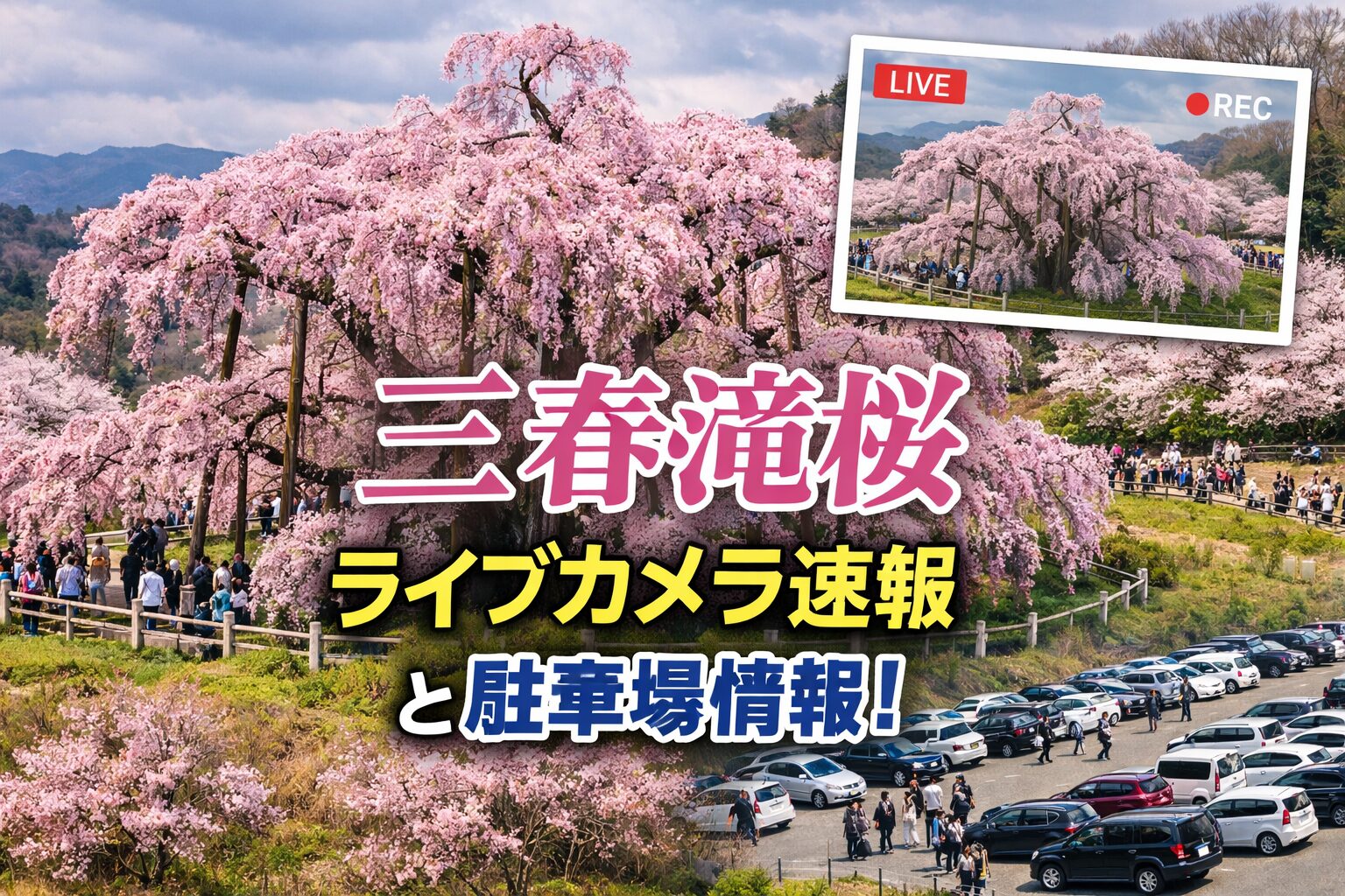 - 駐車場は850台収容・無料:滝桜大駐車場がメイン、混雑時は三春町運動公園から無料シャトルバス利用がおすすめ
